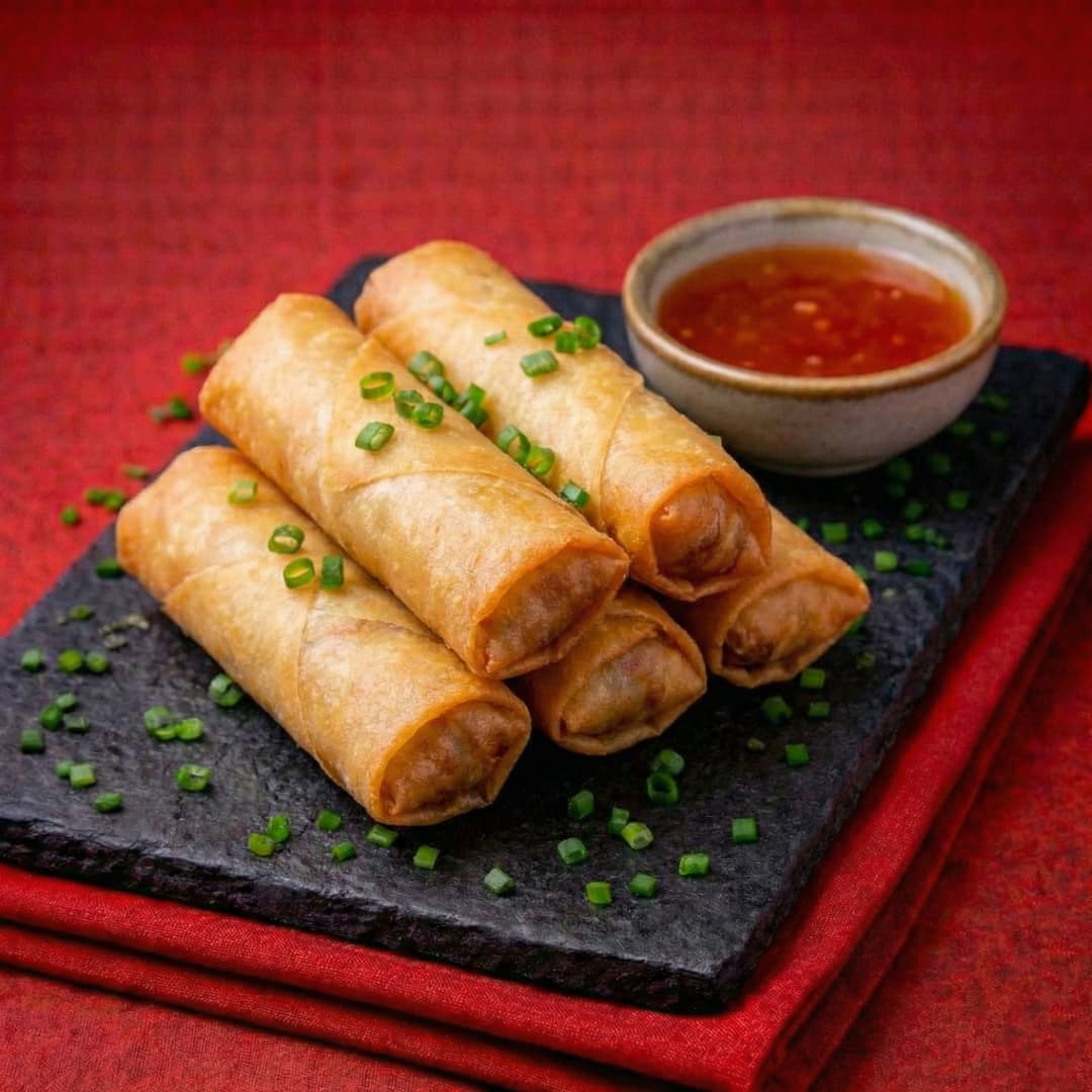 Rollo frito relleno de verduras sazonados al estilo oriental, crocante por fuera y sabroso por dentro.